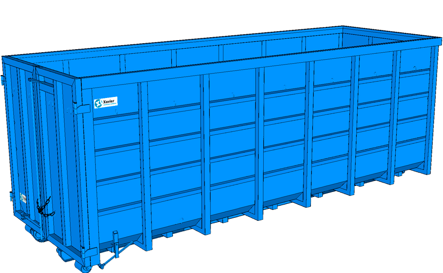 O Chassi do contentor é construído em perfil IPE 180 (S 275 JR) levando reforços laterais exteriores em chapa aço (S 235) em 5mm com um comprimento de 2.5mts. A estrutura de suporte do sistema POLIBENNE é em UPN 180 (S 275 JR) reforçada com chapa aço (S 235) 10mm. O gancho onde trabalha o sistema é construído em Varão redondo Fe400 de 50mm.